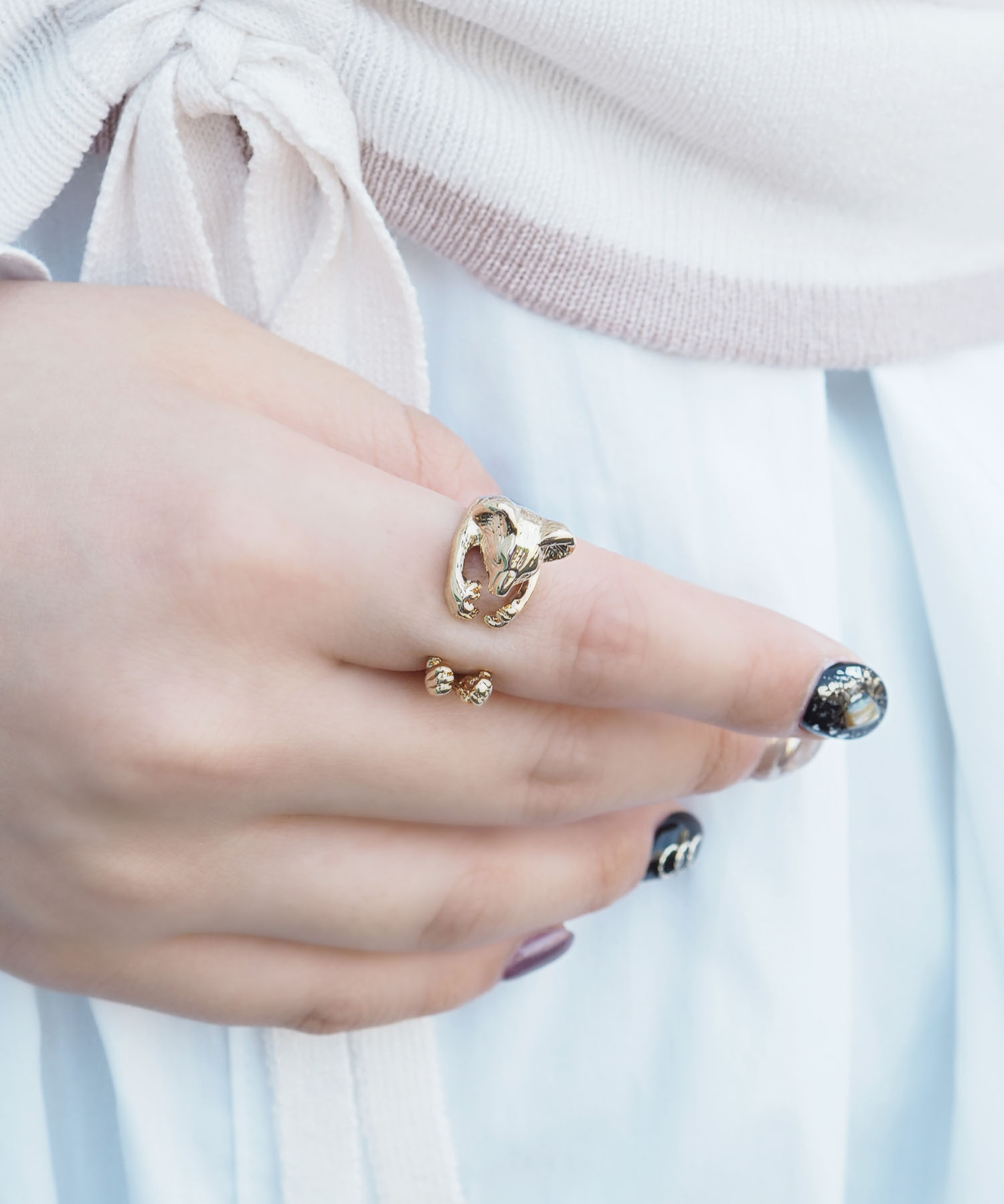伏せるパピヨンリング 送料無料 指にぺたりと伏せた立体的なパピヨンの指輪です Iichi ハンドメイド クラフト作品 手仕事品の通販